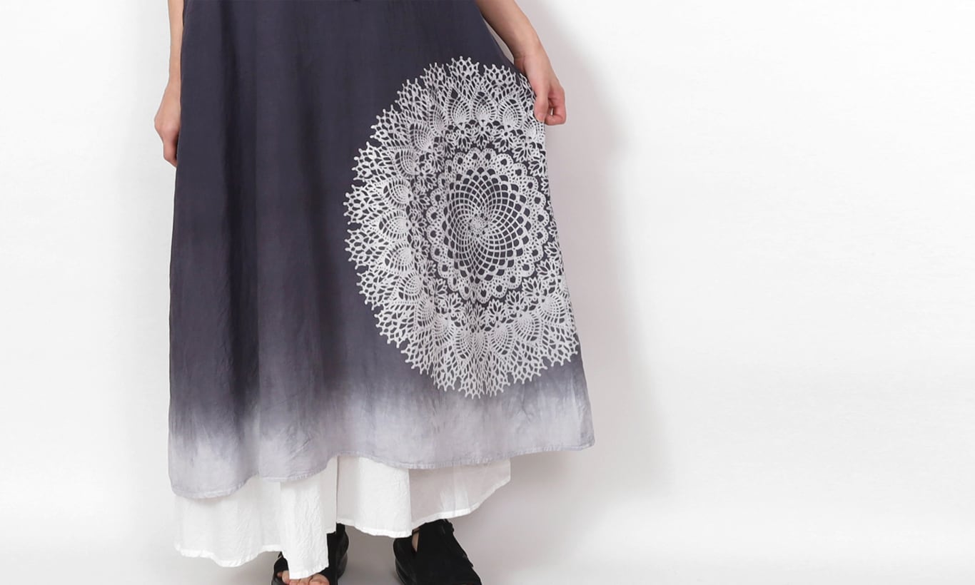 Batik×bengara half linen gathered dress