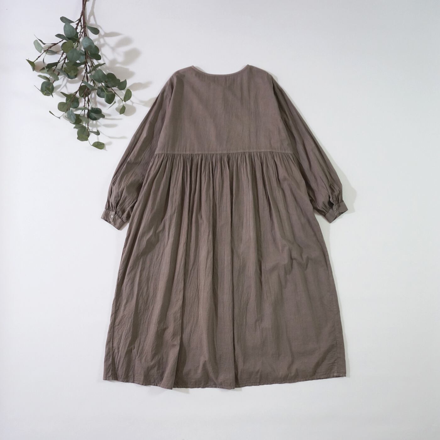 手染めのさらっとコットンボイル前開きギャザーワンピ *cocoa Brown*