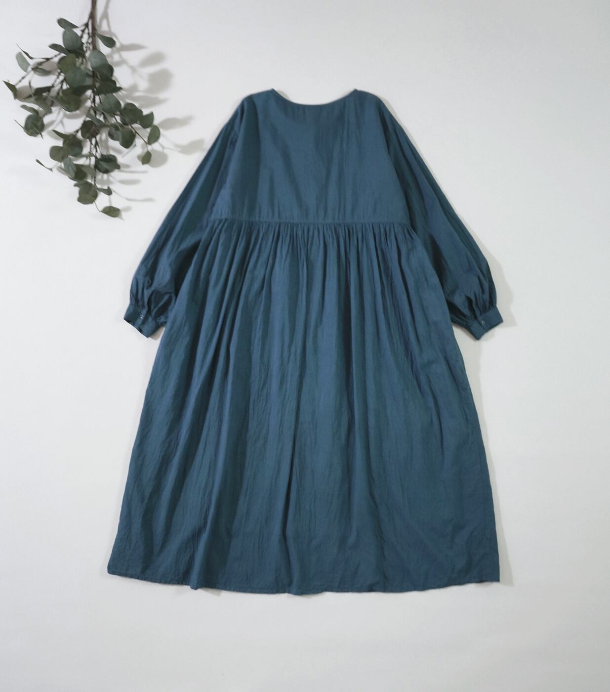 手染めのさらっとコットンボイル前開きギャザーワンピ *indigo blue*